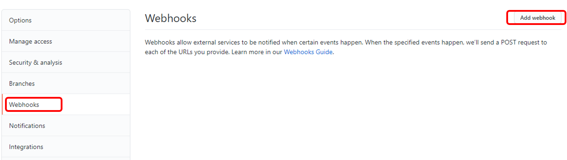 깃헙 프로젝트 레파지토리 -> settings에서 Webhook을 추가해야 합니다.