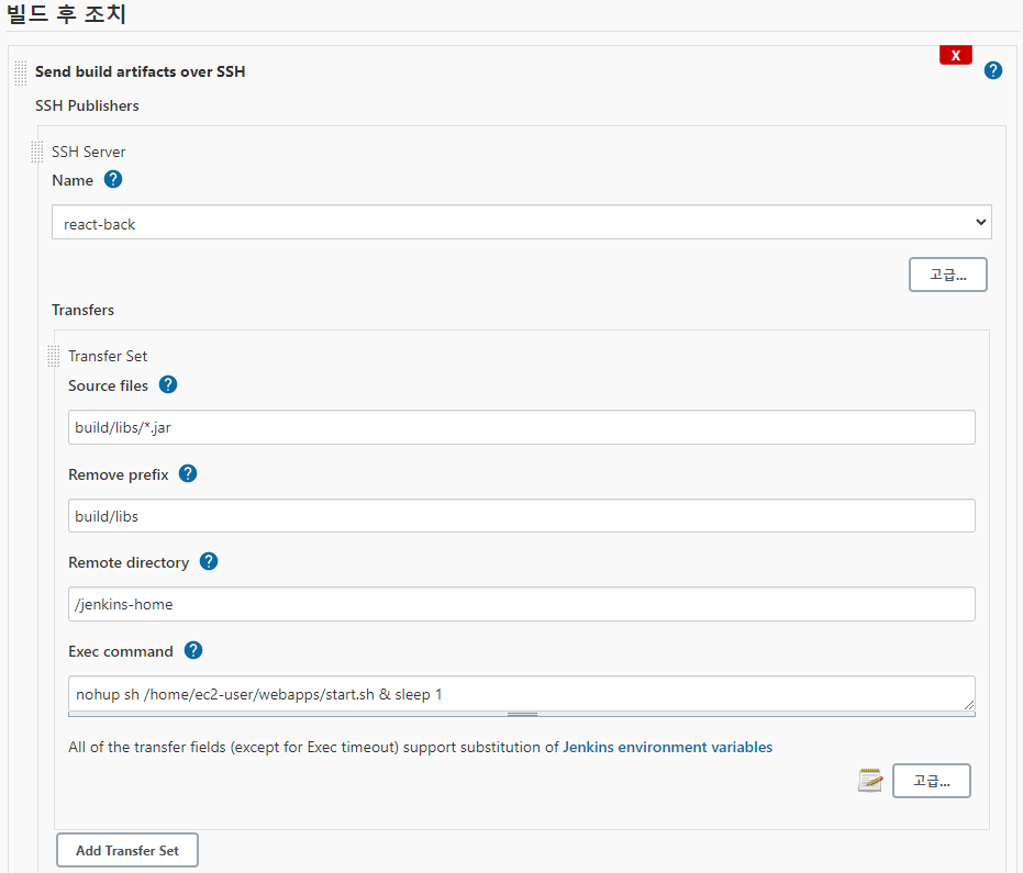 Jenkins관리 -> 시스템 구성 -> Publish over SSH