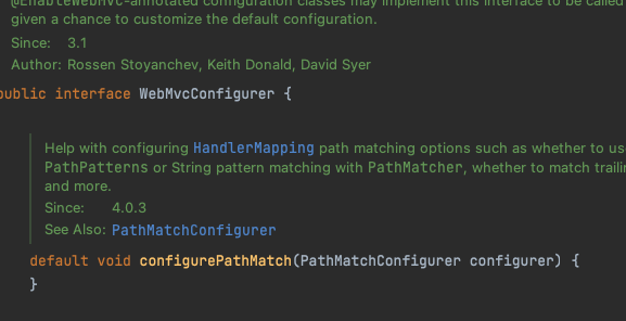 WebMvcConfigurer 인터페이스를 보면 내부에 많은 메서드들이 존재하는데 모두 default로 선언되어있어,