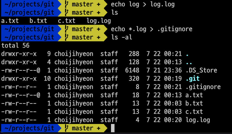 gitignore파일에 *.log 내용도 추가해줍니다.