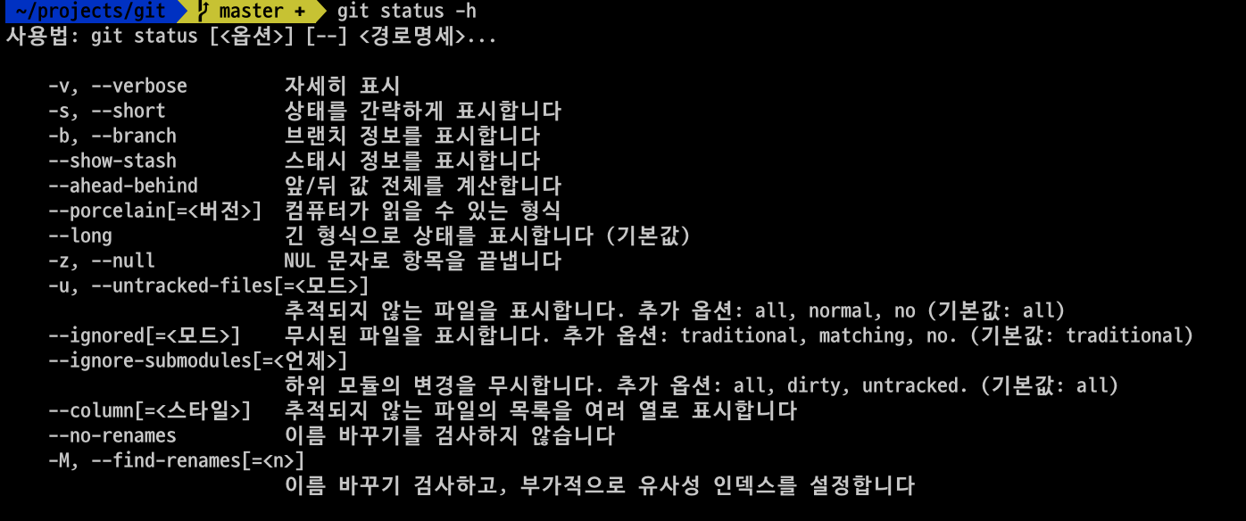 git status 사용법을 확인해보면